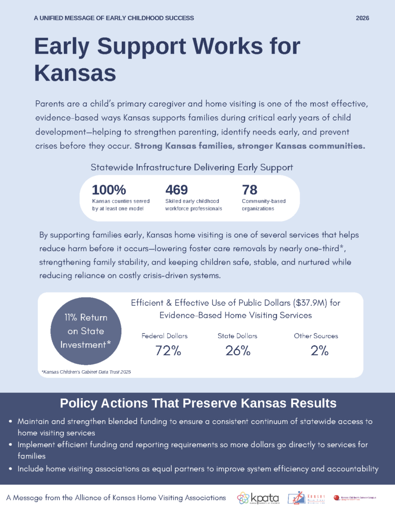 Kansas Parents as Teachers Association provides leadership, professional development, and advocacy to build high quality home visiting programs throughout Kansas.
